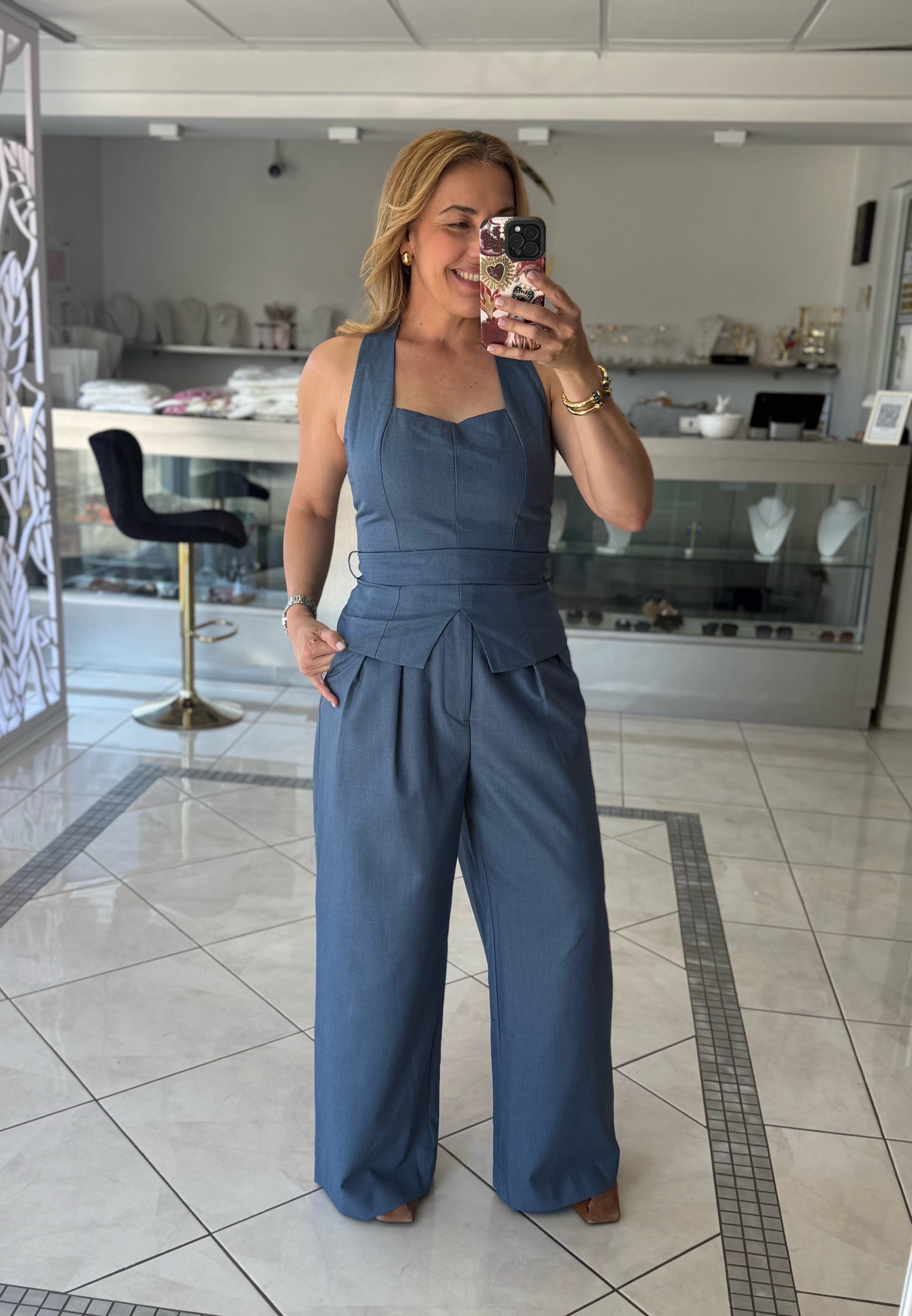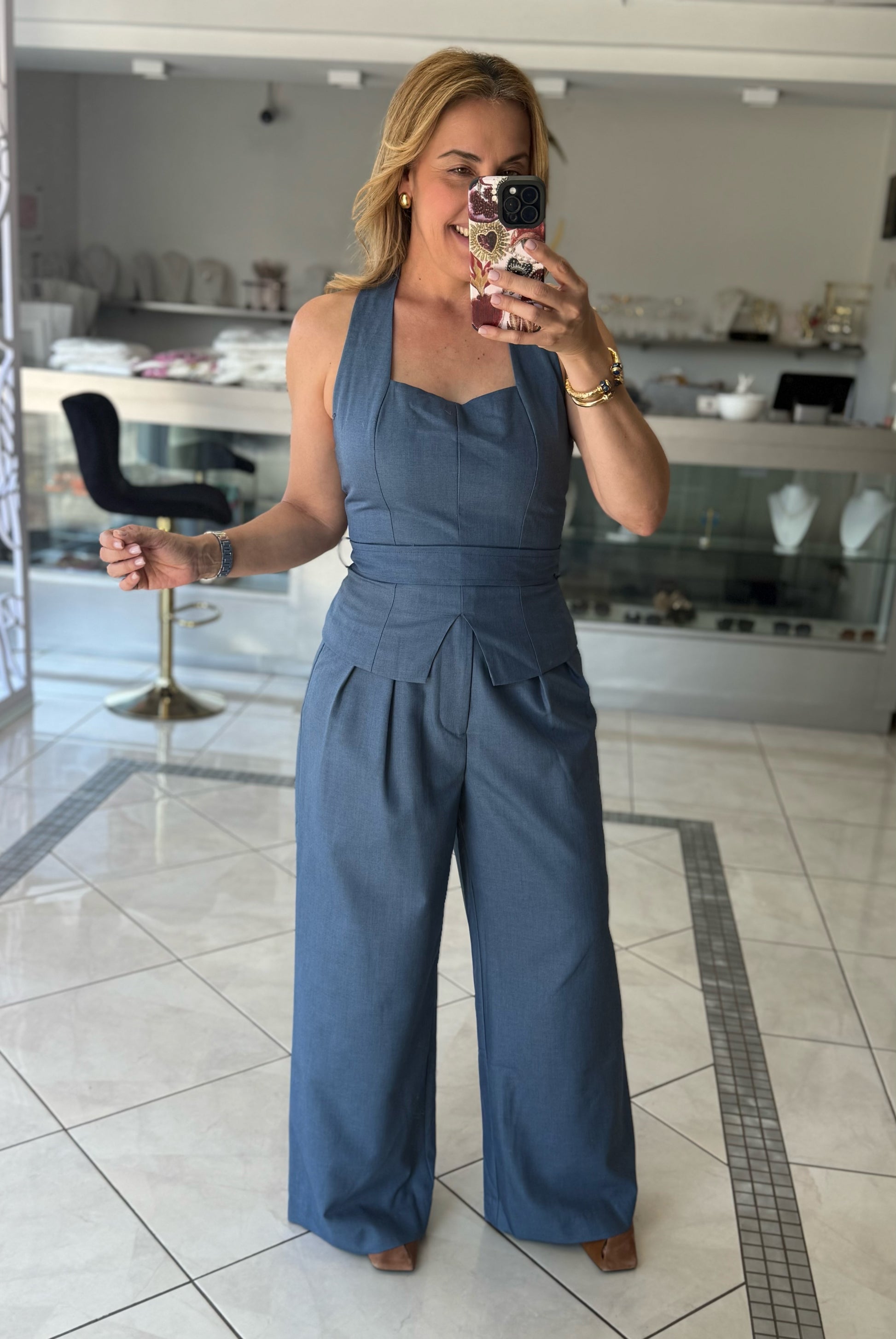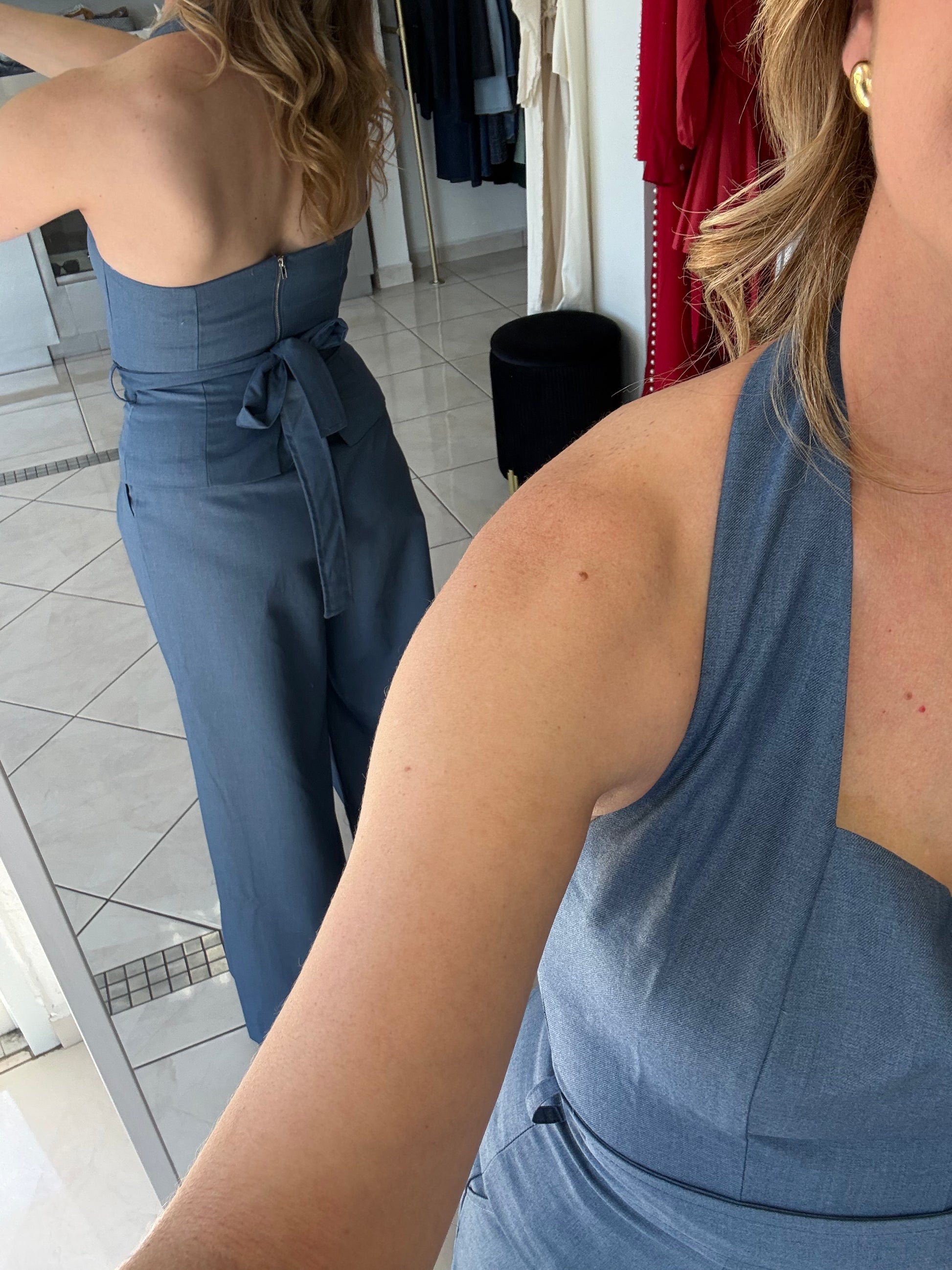 - Top halter forrado zipper en la parte posterior no estira