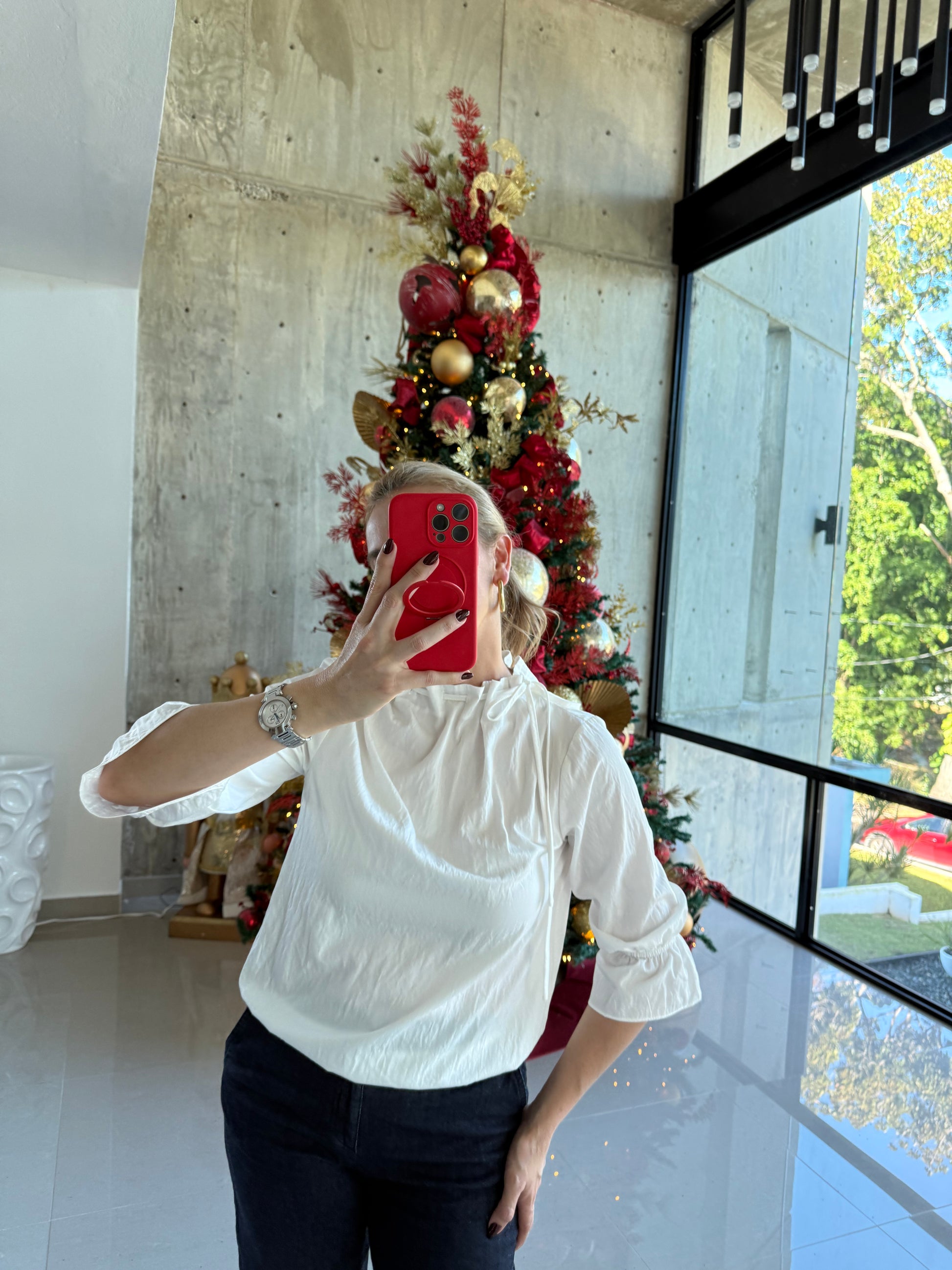 Cinched mock neck blouse