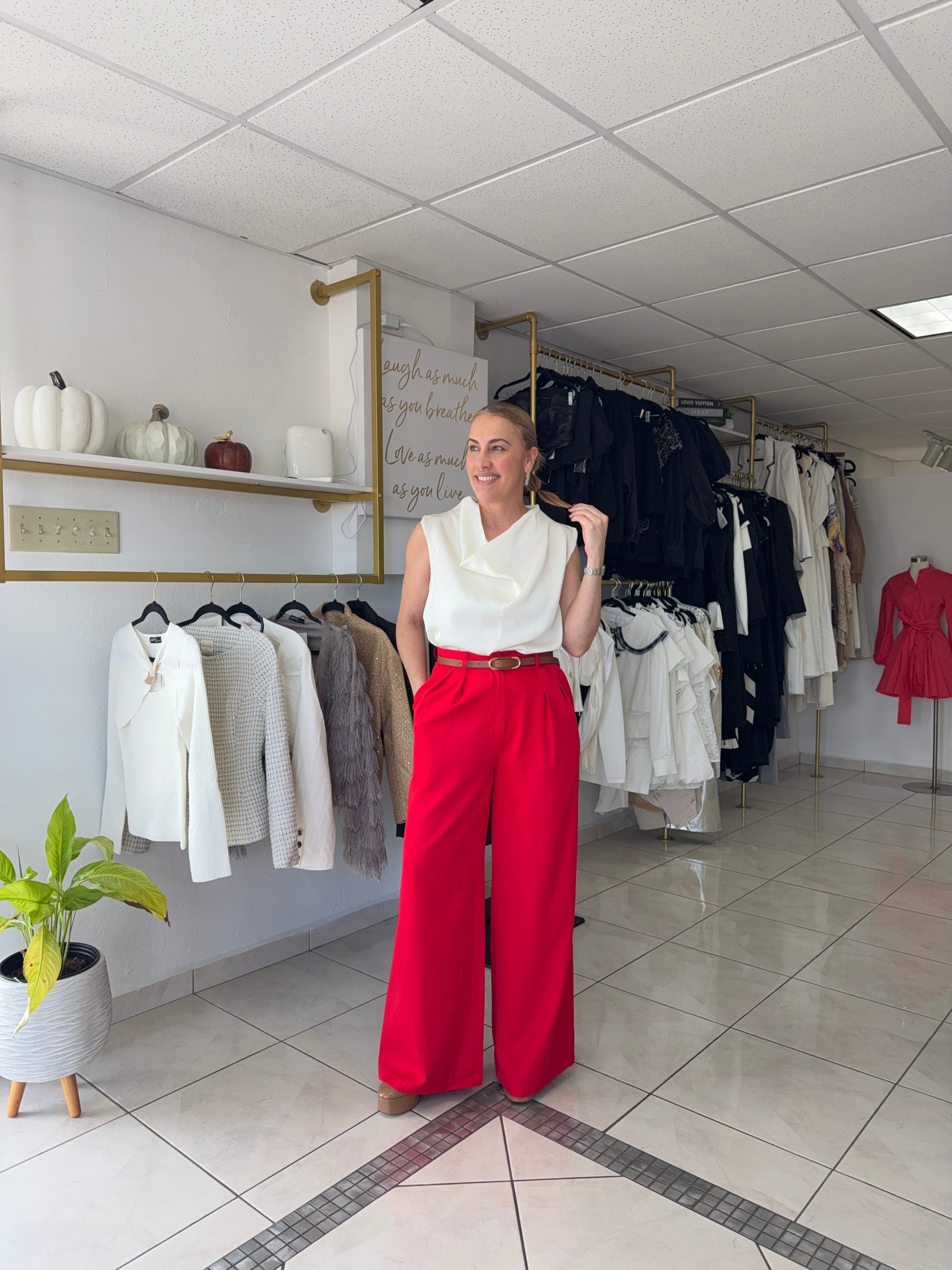 Tabla de Medidas- Pantalon de corte clasico en un vibrante tono rojo, confeccionado con caida estructurada.