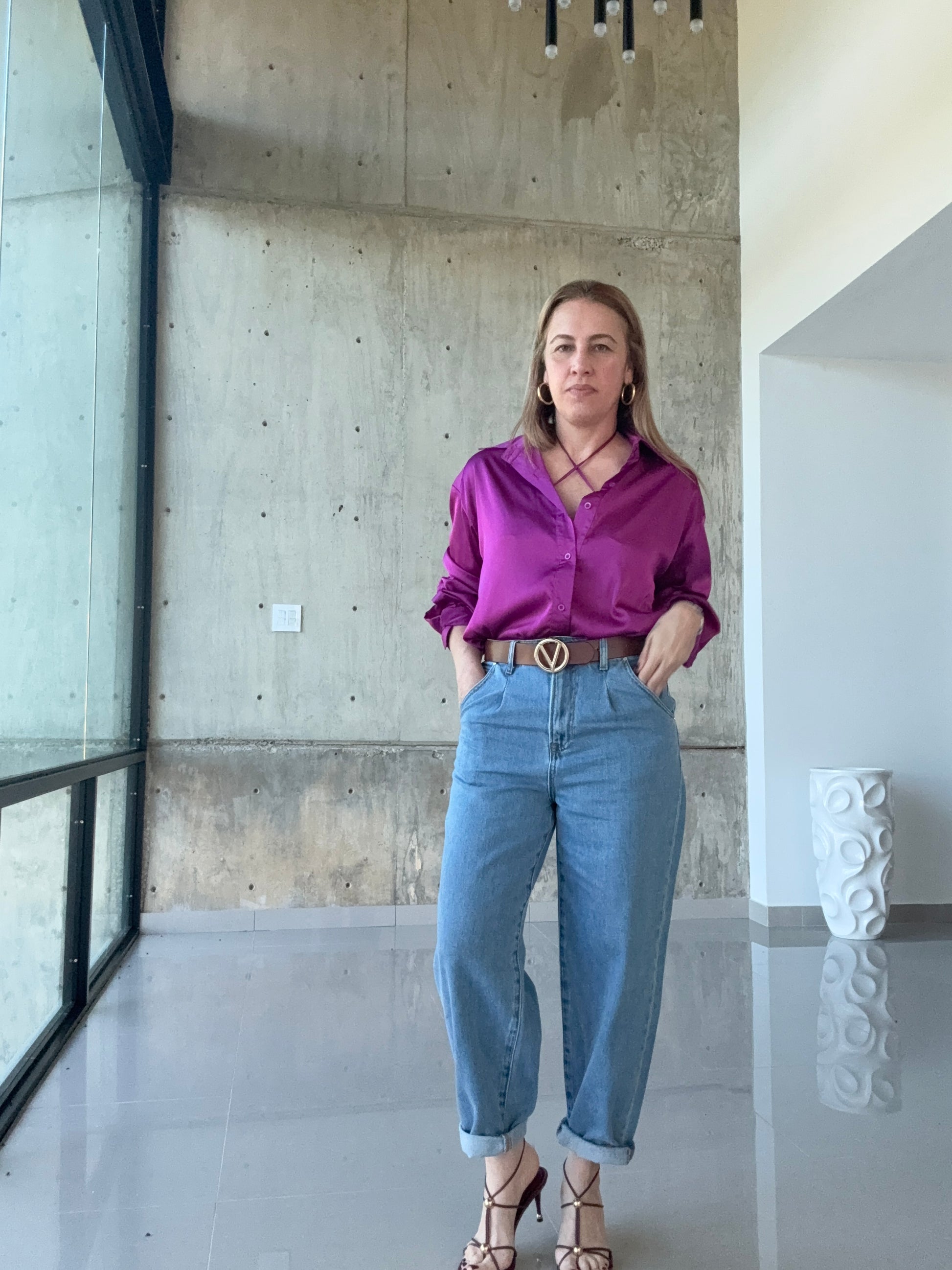 Tabla de MedidasHermoso top satinado que incluye un bra cruzado al frente para el look que se muestra en la foto.